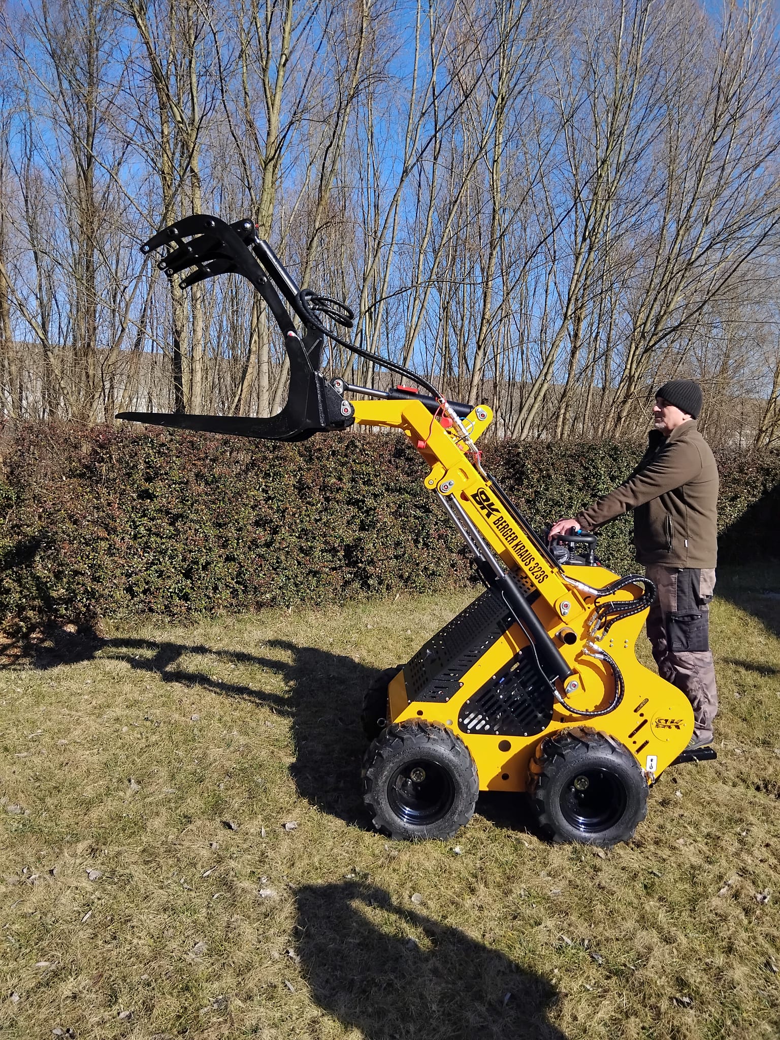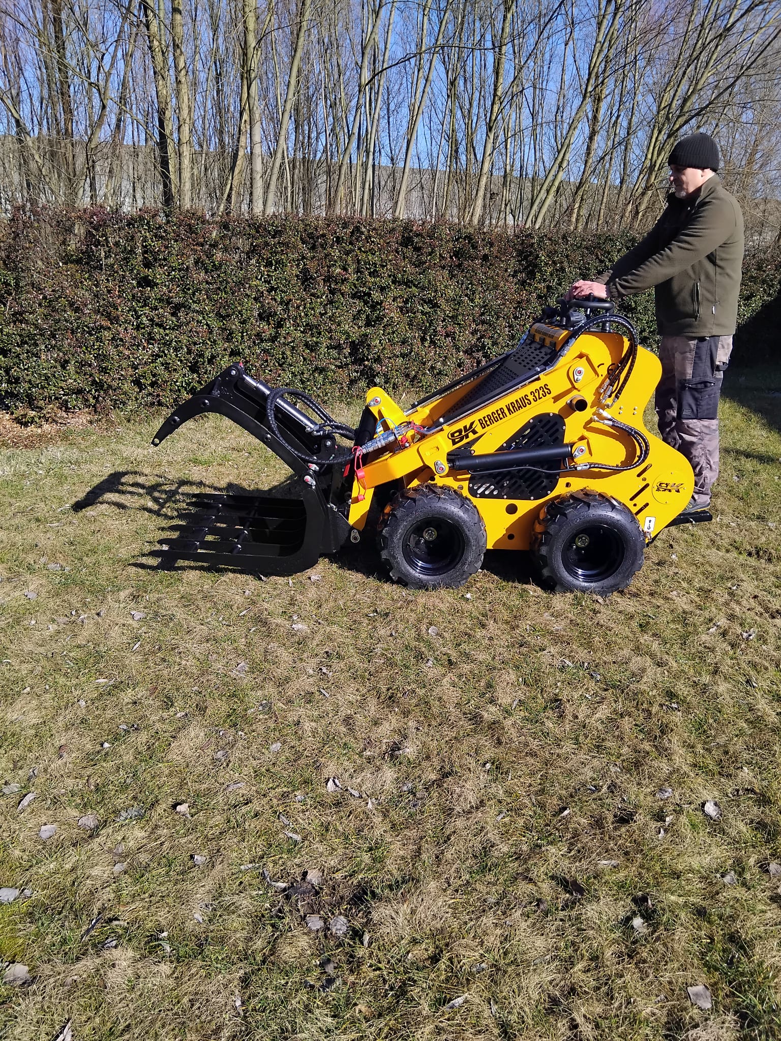 Beger Kraus 323S jest solidnie wykonaną mini ładowarką wielofunkcyjną kołową stworzoną do prac przy wyrównywaniu terenu, pracach brukarskich oraz pracach ogrodowych. Dzięki szerokiej gamie sprzętu dodatkowego każdy znajdzie inne zastosowanie. Małe rozmiary oraz prosta konstrukcja sprawia, że urządzenie jest proste w obsłudze i serwisowaniu. Specjalna kompaktowa budowa i wymiary umożliwiają transport ładowarki na standardowym busie do 3,5t oraz małych przyczepach.