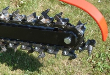 Trencher wyposażony jest w hydrauliczny napęd na koła, który znacznie ułatwia pracę maszyną. Sterowane hydraulicznie ramie pozwala płynnie ustawić wymaganą głębokość wykopu.